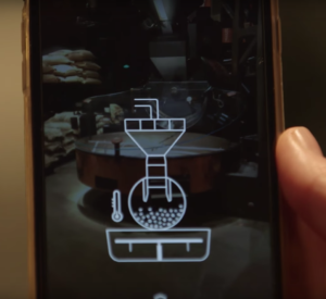 Customers can drop by several stations, including three coffee bars offering different brewing methods and a 3D-printed tea bar. They can point their mobile phones at the various attractions for an AR experience and find out, through visuals, information about how their brew for the day makes its way from bean to cup.