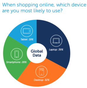 Even though smartphone shopping is growing in popularity, they are only the third most popular device consumers are likely to use when shopping online (28%). Laptop (39%) and desktop (32%) continue to lead the way here. There is a big generational divide here. Over half (53%) of 18-34 year olds use a smartphone the majority of the time, while this figure drops to 28% for 35-53 year olds, and 7% of over 55s.